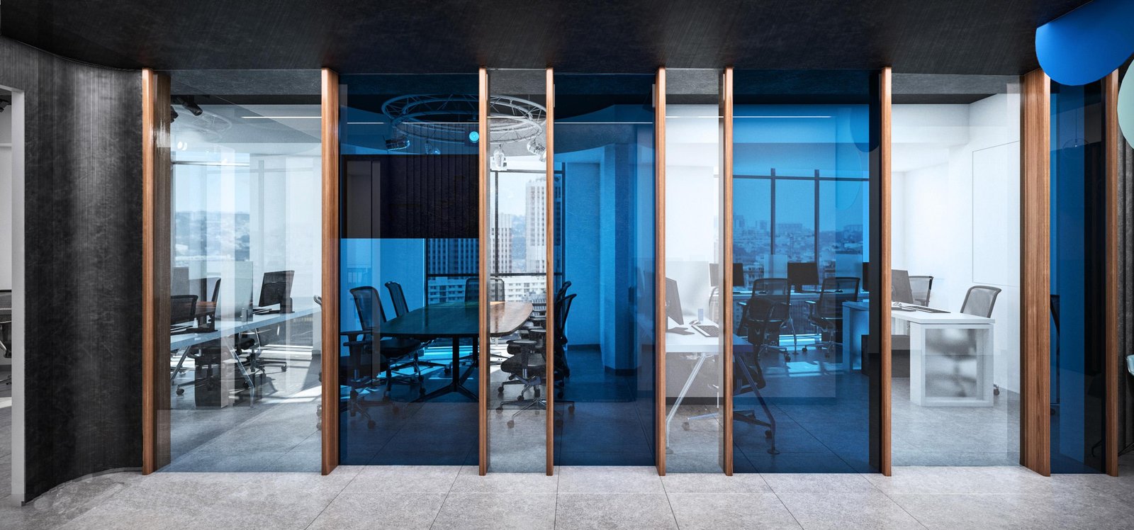 Warm wood accents and refined detailing create a cohesive spatial identity from reception to workspaces, forming a modern environment that enhances productivity and brand presence