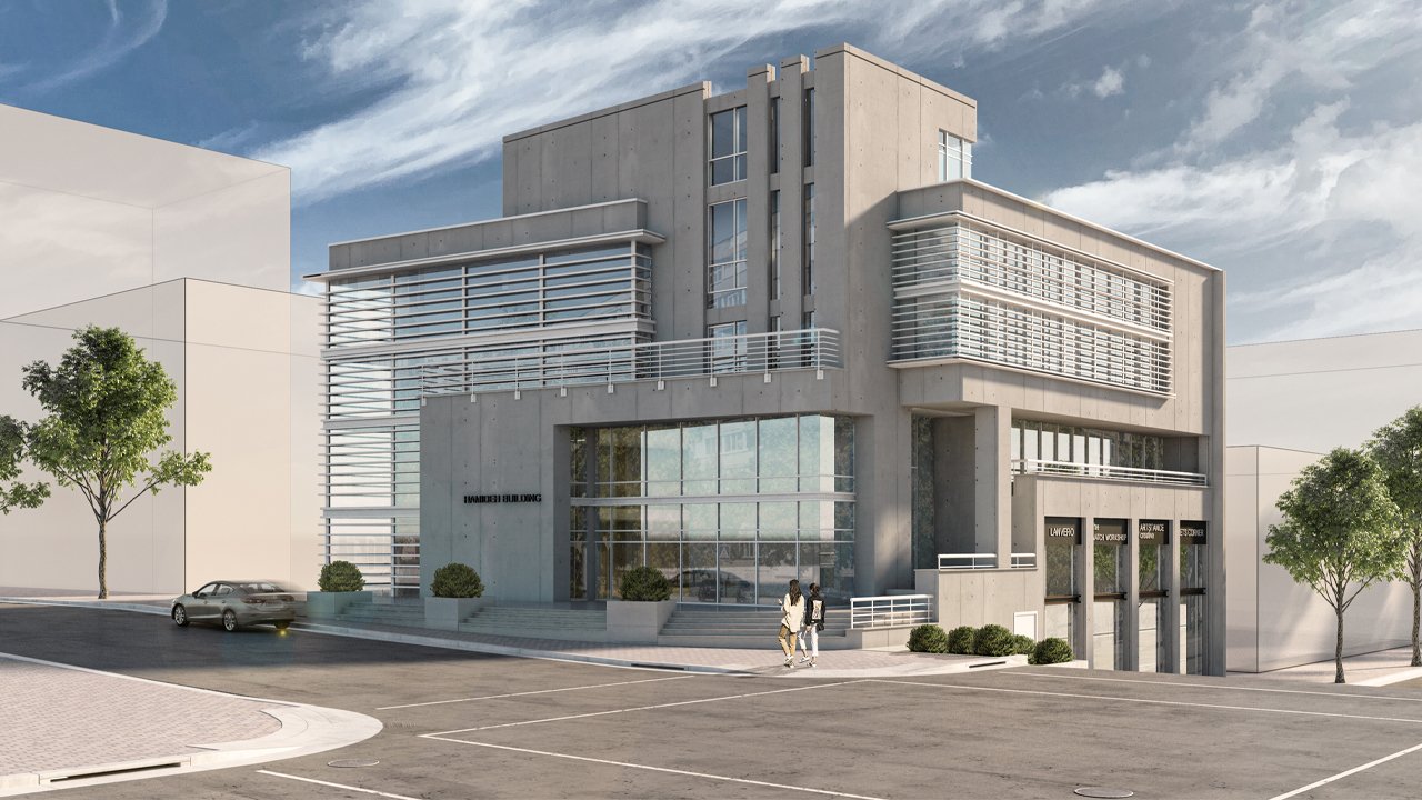 The idea was to break the main mass into layers; protruded layers for retail shops, and recessed layers for offices.